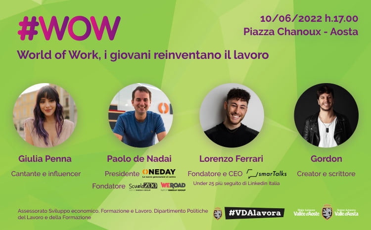 L’evento #WOW, World of Work – i giovani reinventano il lavoro, vuole puntare l’attenzione su ragazzi e ragazze che hanno